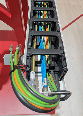 為了防止電纜糾纏、磨損、拉脫、掛、散亂、短路、漏電等情況出現,常把線束放入拖鏈中,對線束形成保護